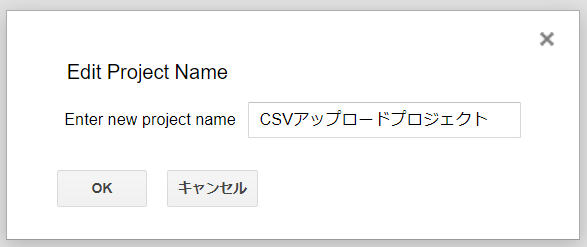 「無題のプロジェクト」という部分をクリックするとプロジェクトに名前を付けられるので「CSVアップロードプロジェクト」に変更します。