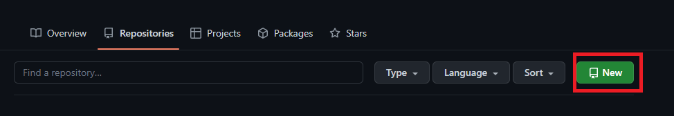 リポジトリ一覧が表示されるので、右側にある「New」をクリックします。